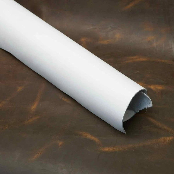 White Diamante. These large cow sides are averaging in the range of 22 – 28 square feet and are approximately 5 – 6 oz. (2 – 2.4 mm.). This is sold by the square foot, so order as much as you want and we will cut it for you.